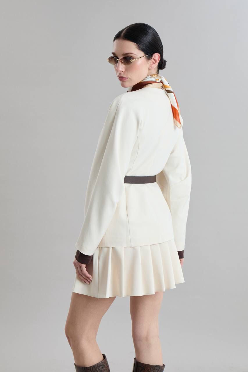 Découvrez notre ensemble veste jupe écru à manches ballons, l'incarnation parfaite de la sophistication moderne. Cette pièce signature ALTA Collection allie raffinement classique et détails contemporains pour créer une silhouette irrésistiblement élégante.