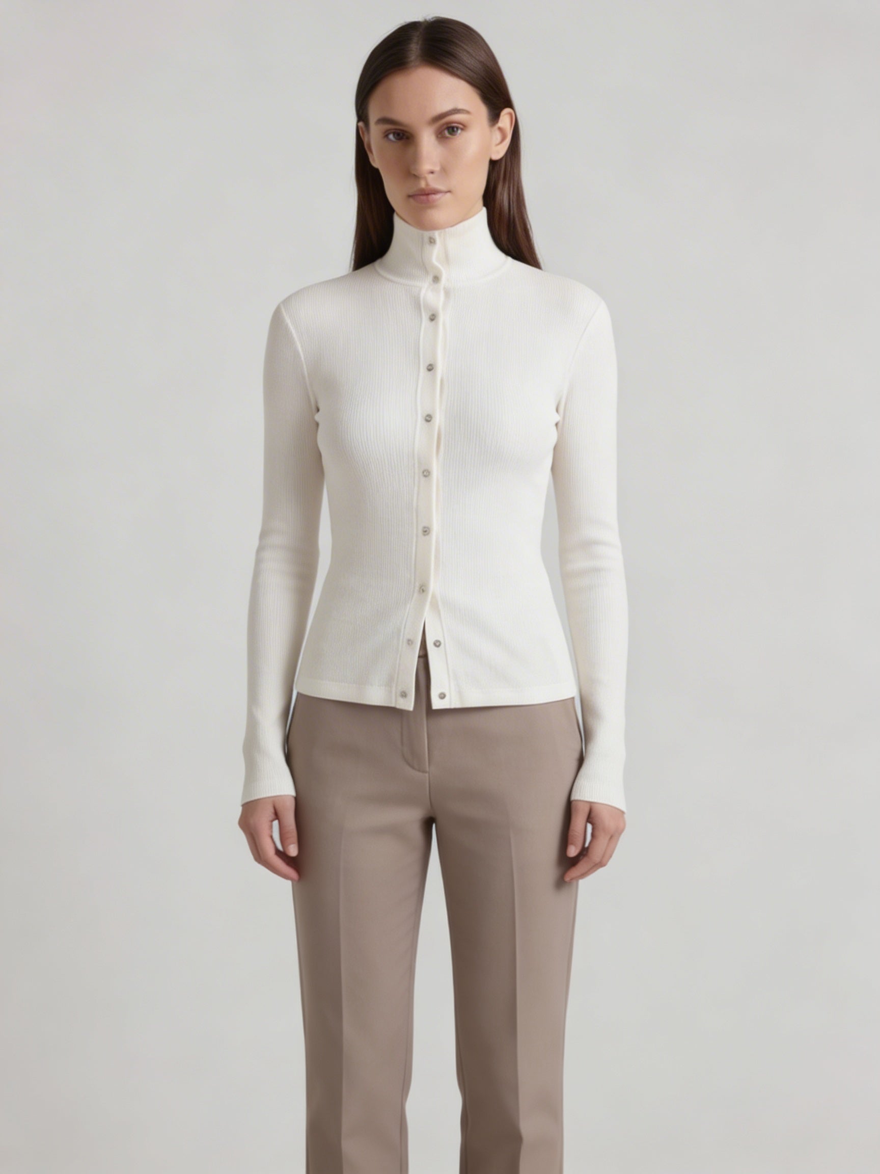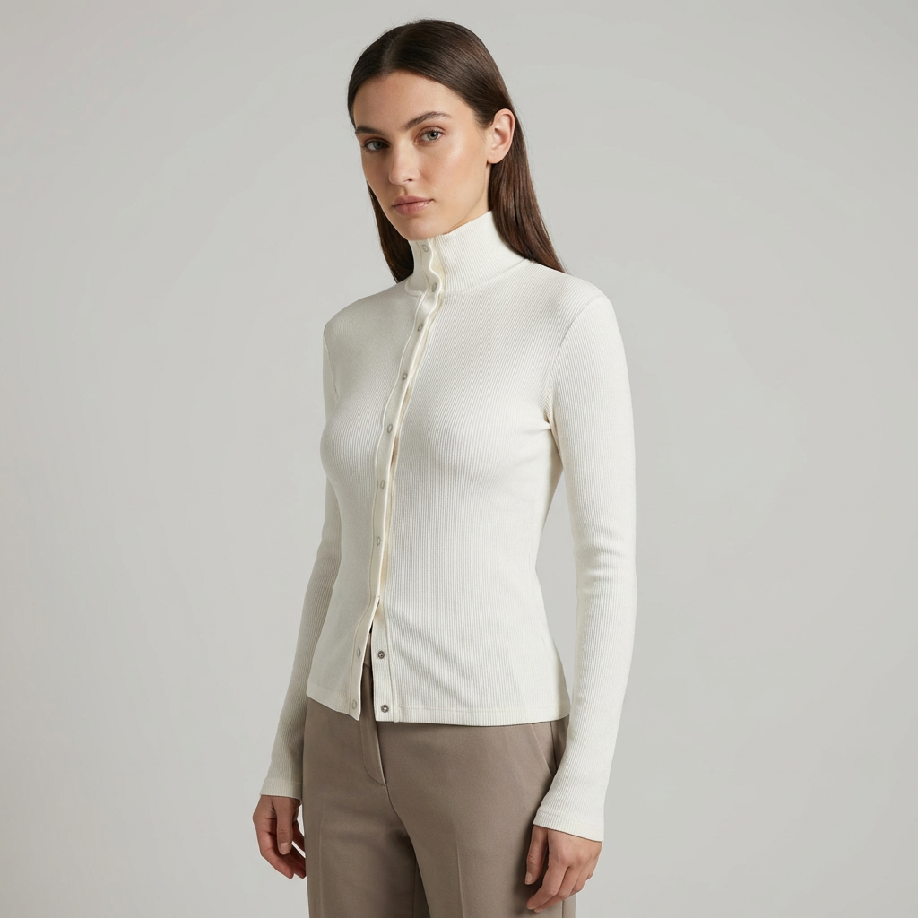 Ce haut se porte aussi bien avec une jupe élégante pour un look chic, qu'avec un pantalon pour un style minimaliste et moderne. Fermez les pressions pour un col montant structuré, ou laissez-les ouvertes pour un décolleté plus décontracté.