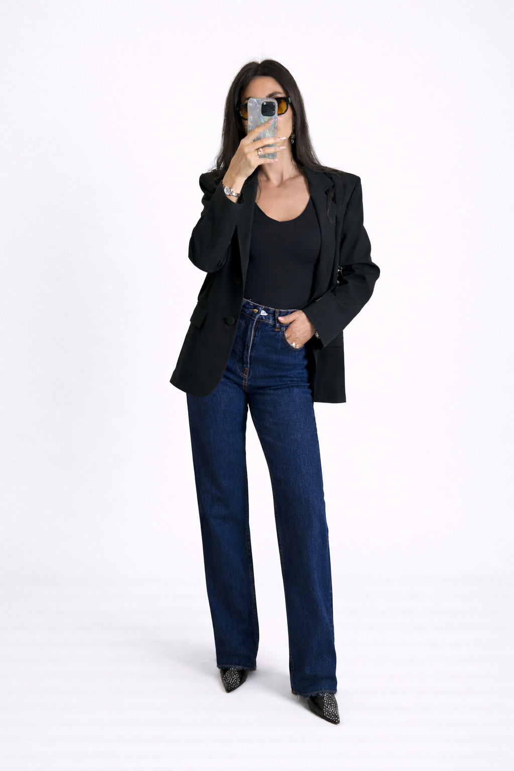 Ce jean se marie parfaitement avec un t-shirt basique pour un look décontracté, un chemisier pour une allure plus sophistiquée, ou un crop top pour un style tendance. Associez-le à des bottines pour un effet rétro ou à des talons pour allonger la silhouette.